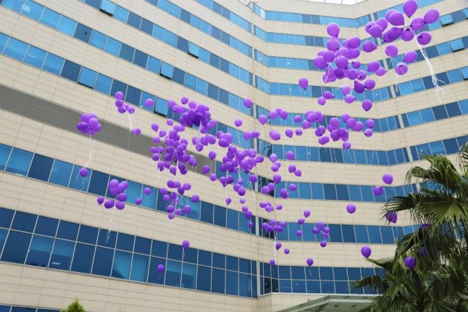 Kanserle mücadelede farkındalık oluşturmak amacıyla ellerindeki mor balonları hastane bahçesinden gökyüzüne bırakan Başkan Yılmaz ve katılımcılara, kanser hastaları da odalarının pencerelerinden el sallayarak ve karanfil atarak eşlik etti.
