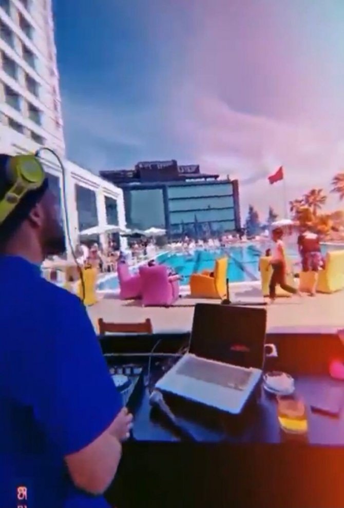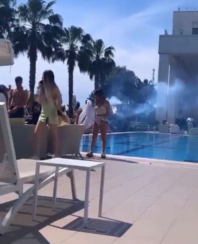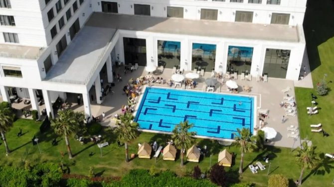 Sosyal mesafe ve maske kuralının hiçe sayıldığı etkinlikte otel müşterisi oldukları öğrenilen çok sayıda kişi görüntülere yansıdı. Görüntülerde otel çalışanlarının maske takarak servis yaptıkları, etkinliğe katılanların ise tedbirleri hiçe saydığı görüldü. Öte yandan korona virüse davetiye çıkaran etkinlik drone ile havadan görüntülendi.