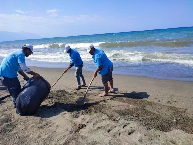 Petrol atıklarının vurduğu Samandağ sahili temizlendi