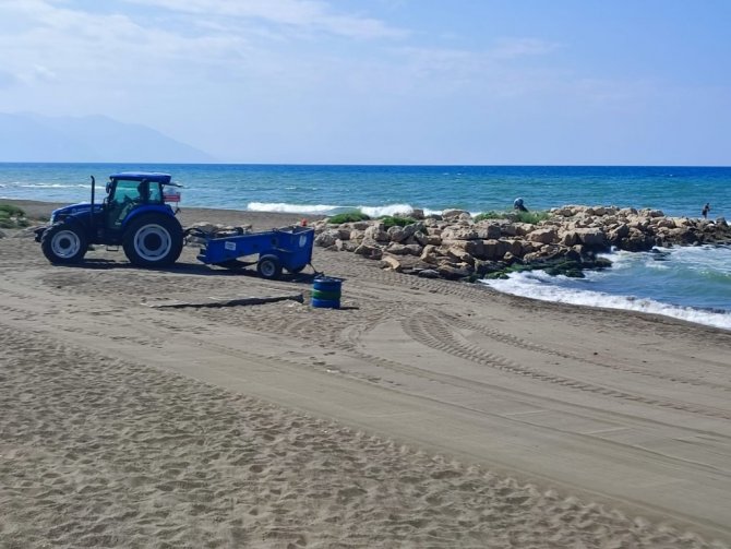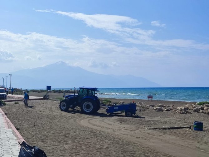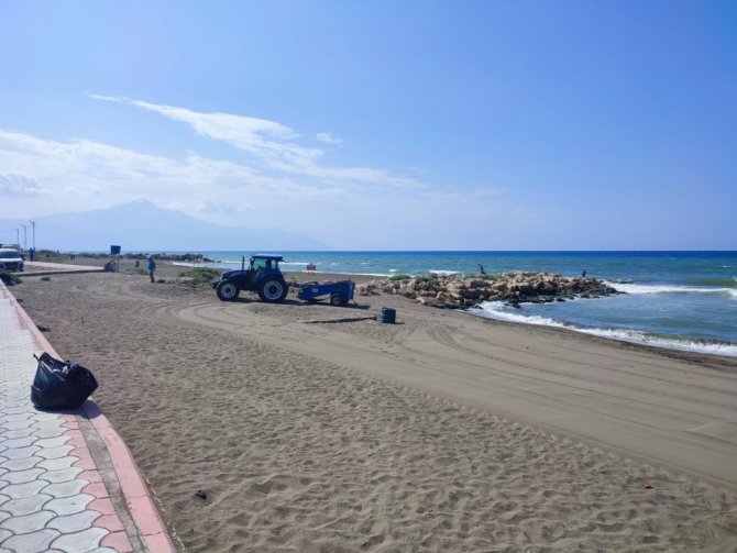 Öncelikle sahilde bulunan petrol atıkları temizlik görevlileri tarafından temizlenirken, traktörler ile sahilde düzeltme çalışmaları yapıldı.