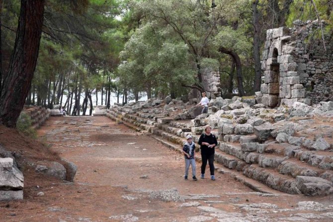 Antalya'nın Kemer ilçesinde yer alan Phaselis Antik Kenti, ziyaretçi akınına uğruyor.
