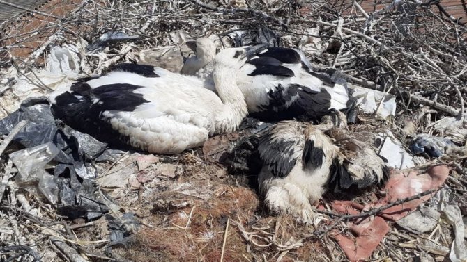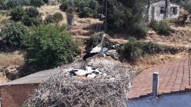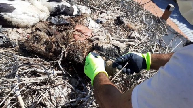 Plastik ipler, yavru leylekleri tehdit ediyor