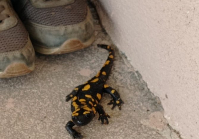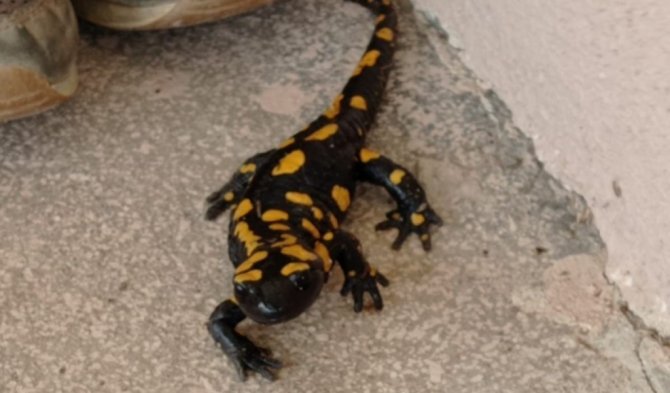 İnternette araştırdığında sürüngenin sarı benekli Anadolu semenderi olduğunu öğrenen Adak, nesli tehdit altında olan semenderi yetkililere teslim edeceğini söyledi.