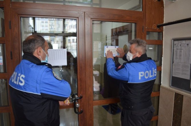 Halkın duyarlı olması için bina girişlerine broşür asan polisler, kapı kapı dolaşarak vatandaşları misafir kabul etmemeleri ve misafirliğe gitmemeleri gerektiğini ifade etti.