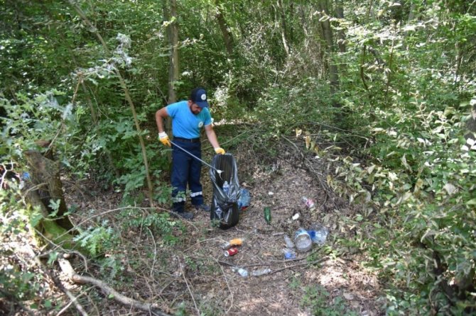 Ormanlık alanlarda atılan şişeler, cam kırıkları yaşanabilecek orman yangınlarına sebebiyet olmaması için ekipler tarafından toplandı. Mustafa Kocaman, "Ülkemizin bir çok noktasında ciğerlerimiz yandı. İlçemiz genelinde ormanlık alanlarımız 7/24 devletimizin bütün kurumlarıyla işbirliği içerisinde kontrol edilmektedir. Ormanlarımıza en iyi şekilde koruyalım, onlara hep birlikte sahip çıkalım" ifadelerini kullandı.