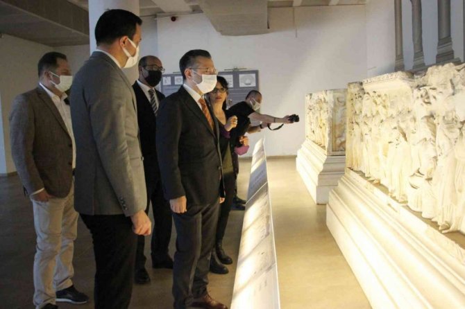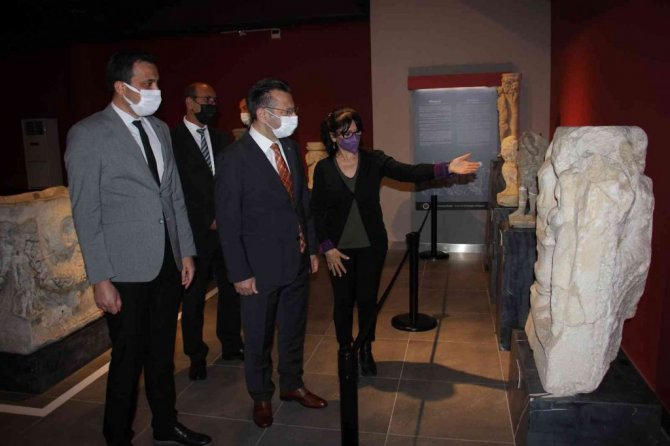 Müzeye giden Aydın Valisi Hüseyin Aksoy, eserleri yerinde inceleyip Aydın'daki çalışmalar hakkında bilgiler verdi.