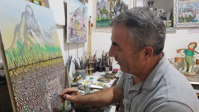 Manisa'da emekli polis memuru olan ressam Hidayet Gültekin, 40 yıl önce tutkuyla bağlandığı sanat sevgisinden hiç vazgeçmedi.