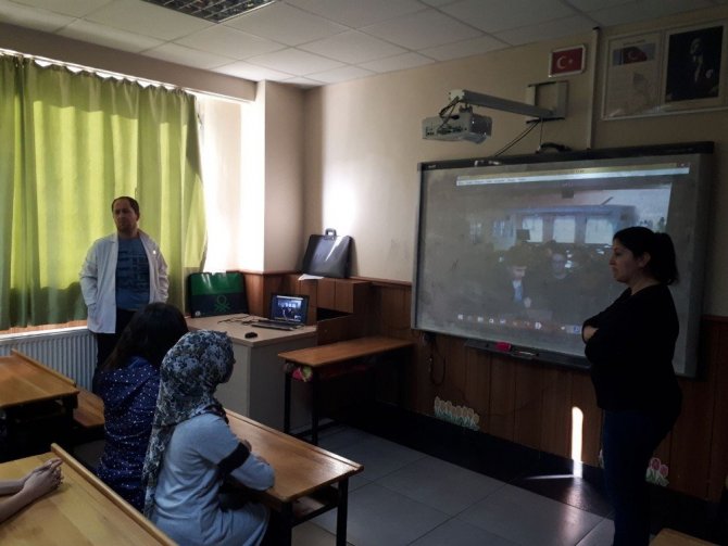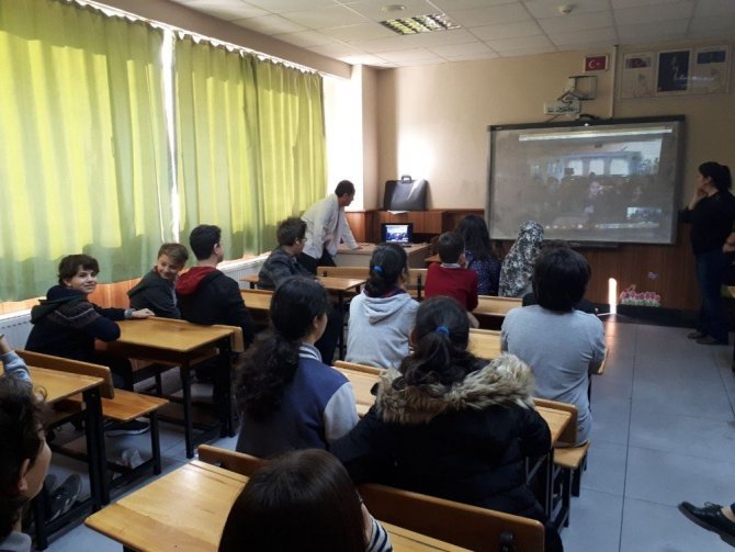eTwinning üzerinden 4 adet proje yürütülen okulda bugün Coolture Kids Projesi kapsamında Polonya’nın Varşova kentinde bulunan Tadeusza Reytana w Warszawie okuluyla online ders işlendi. Proje kapsamında geçen hafta öncelikle öğretmenler arası skype üzerinden yapılan toplantı ile faaliyetler, katılımcı sayıları üzerine fikir alışverişi yapıldı. Bugün ise Türkiye’den 21, Polonya’dan28 öğrencinin katılımıyla online olarak öğrenciler birbirlerine kendilerini tanıtıp, hobileri, okulları yaşadıkları şehirler ve ülkeleri hakkında bilgilendirme yaptı.