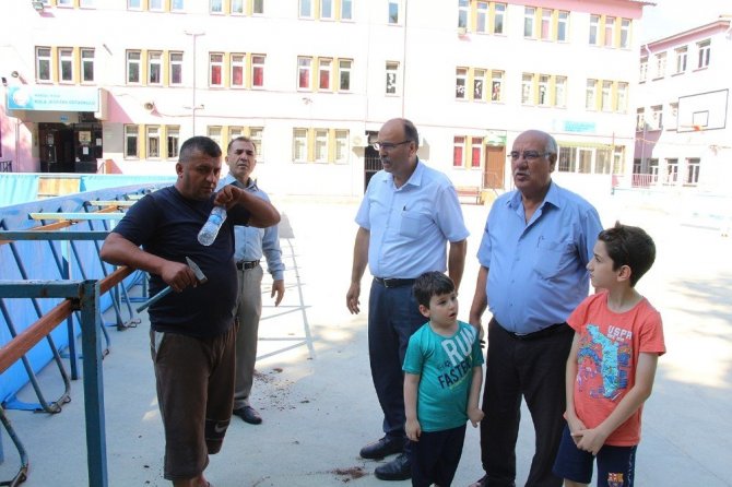 Kula Kaymakamlığı’nın girişimi, Gençlik ve Spor Bakanlığı’nın destekleriyle ilk ve ortaokul çağındaki öğrencilerin yaz tatilini verimli geçirmesi için düzenlenen ücretsiz kurslarda eğitim verilmeye başlandı. Futbol, basketbol ve voleybol branşlarında olduğu gibi yüzme kursu da açılan proje kapsamında, Tabduk Emre İlkokulu bahçesine portatif yüzme havuzu kuruldu. 22 Temmuz Pazartesi günü yüzme kursuna başlanacak olan portatif havuzda incelemelerde bulunan İlçe Milli Eğitim Müdürü Adem Sümen, İlçe Spor Müdürü İbrahim Özel ve İlçe Milli Eğitim Şube Müdürü Hüseyin İzci, kurslar ile ilgili bilgi verdi.