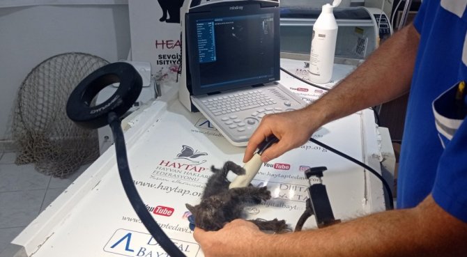 Kedinin sağlık durumuyla ilgili veren Veteriner Hekim Ali Laçinbala, "Bu yavruyu poşet içerisine bağlayıp atmışlar. Çocuklar okuldan gelirken, çalılıklardan bir ses duymuşlar ve ardından poşeti fark etmişler. Poşetin içerisinden çıkartıldığında kedi kan ter içerisindeydi. Bu canlıların ter bezi yok ve bu kedimizin de kan ter içinde kalmasının tek sebebi saatlerce 40 derece sıcaklıkta nefes yoluyla kapalı alana maruz kalması gerekiyor. Allah'tan çok uzun bir süre poşet içerisinde kalmamış, çok şükür kurtardık. Bir aylık erkek bir kedimiz. HAYTAP Tedavi Merkezi olarak sahiplendik, artık bizim himayemizde. Şu anda sağlık durumu iyi. Ultrason cihazı ile yapmış olduğumuz muayene sonrasında böbreklerinde de bir problem yok. Erken müdahaleden dolayı bu canımız kurtuldu" diye konuştu.