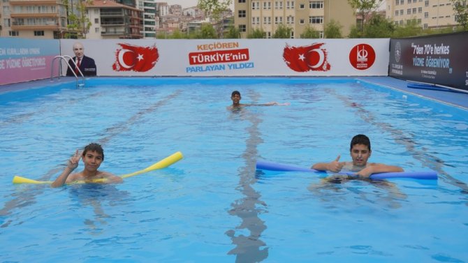 Ankara Keçiören Belediyesi ve Gençlik ve Spor Bakanlığı işbirliğinde "Yüzme Bilmeyen Kalmasın" projesi kapsamında Keçiören'e kurulan 3 adet prefabrik havuz çocukların hem serinlemesi hem de yüzme öğrenmesi için hizmete başladı.
