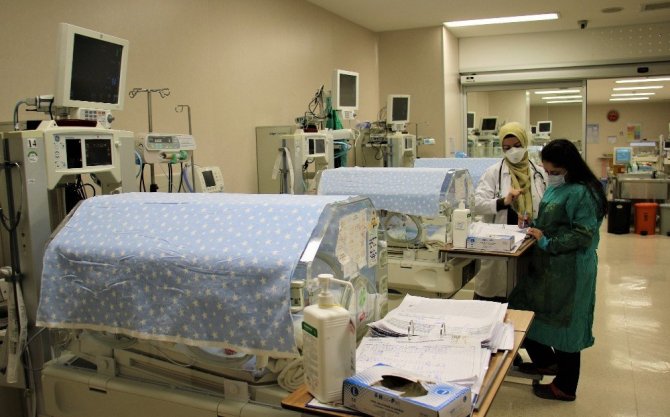 Uzm. Dr. Nihan Hilal Hoşağası, “Hastalarımızın büyük çoğunluğunu prematüre bebekler oluşturuyor. Burada kadın doğum servisimizde doğan veya çevre illerden gelerek prematüre tanısı konan bebekler izleniyor. 37 hafta altında doğan tüm bebeklere ‘prematüre’ diyoruz. Ama 33-37 hafta arasında doğanlar sınırda prematüre bebeklerdir ve her zaman yatırılmaları gerekmeyebilir. Ancak 33. haftadan önce doğan ve 1800 gramın altındaki bebekleri mutlaka yatırarak izliyoruz. Sezaryenle ve normal doğumla dünyaya gelen bebeği uygun koşullarda yoğun bakıma getiriyoruz. Daha sonra kuvözlere alıyoruz. Bebeğe solunum desteği verip bakımlarını yürütüyoruz” dedi.
