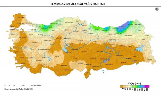 Meteoroloji Genel Müdürlüğünün 2021 Yılı Temmuz Ayı Alansal Yağış Raporu ise şöyle: