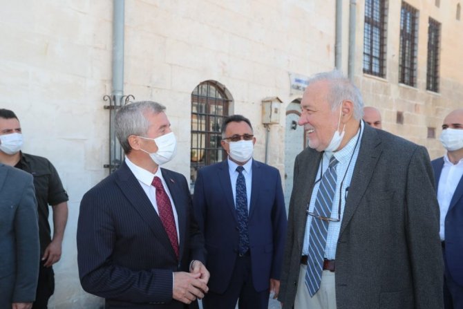 Gazaintep'te düzenlenen Kitap Günleri Fuarı için kente gelen Türk Tarih Kurumu Şeref Üyesi Prof. İlber Ortaylı, Şahinbey ilçesinde restorasyon yapılan tarihi mekanları gezdi.