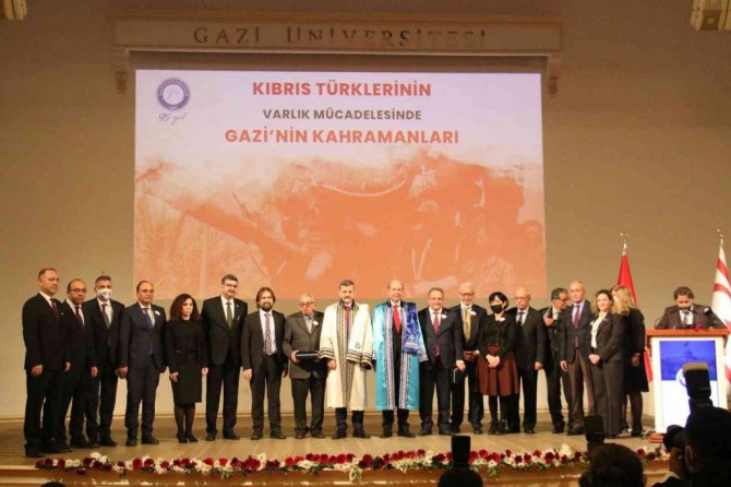 Programda Gazi Üniversitesi Rektörü Prof. Dr. Musa Yıldız tarafından Kuzey Kıbrıs Türk Cumhuriyeti (KKTC) Cumhurbaşkanı Tatar'a biniş giydirilerek, "Gazi Üniversitesi Fahri Doktora Belgesi" takdim edildi.