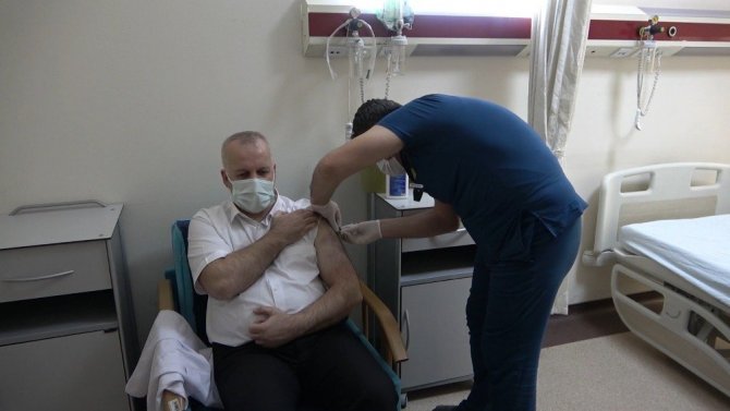 "Mart ayında Dünya Sağlık Örgütü (DSÖ) hastalığı pandemi olarak ilan ettikten sonra ve ülkemizde yayılmaya başladıktan sonra şunu söylüyorduk; bu hastalıktan kurtulmak için ya aşı bulunmalı, ya bir ilaç bularak bu hastalığı hafif geçirmemiz, ya da virüsün mutasyona uğrayarak özelliklerini kaybetmesini bekliyorduk ki bu salgın bitsin. Ama doğumunun birinci yılına geldiğimiz şu aşamada hala virüs özelliklerini koruduğu için hastalık aynen devam ettiği için herhangi bir ilaçta bulunmadığı için şu andaki tek şansımız aşı. Bugünü bekliyorduk. O gün geldi çattı çok şükür. Biraz önce aşımızı olduk. Tüm personelimizle beraber şuan çalışanlarımız aşısını olmaya devam ediyorlar. Bu bir beklentiydi. Buna ulaştığımız için çok mutluyuz. İnşallah halkımızın da bu rakamlara ulaşmasıyla beraber bu salgının eğrisini kırmış olacağız. Bu şekilde bu illetten kurtulmuş olacağız."