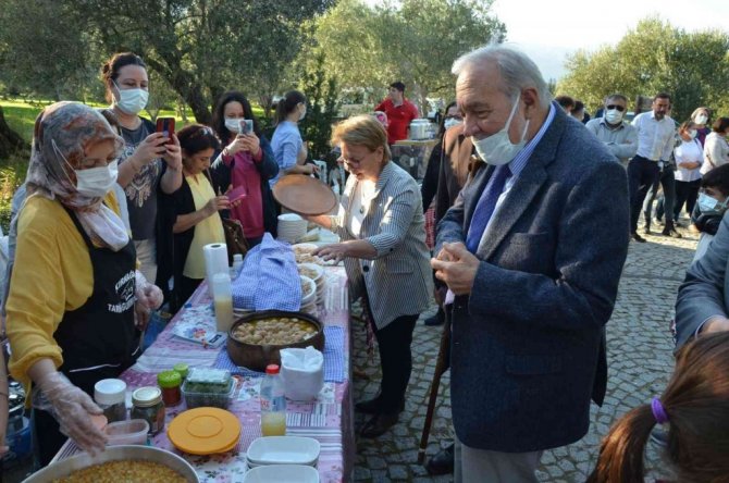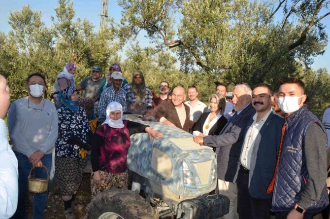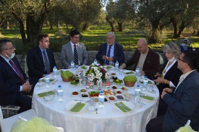 Ziyaret sonunda Prof. Dr. İlber Ortaylı'ya anıt zeytin ağacının zeytinyağı ve Kırkağaç kavunu hediye edildi.