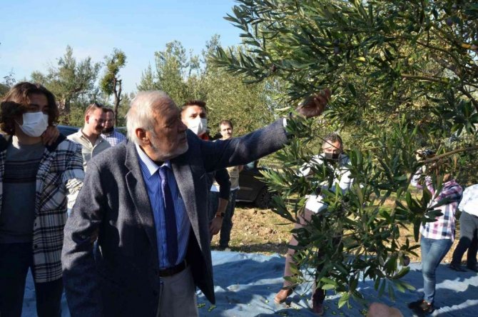 Prof. Dr. Ortaylı Kırkağaç’ta kendi zeytinini hasat etti
