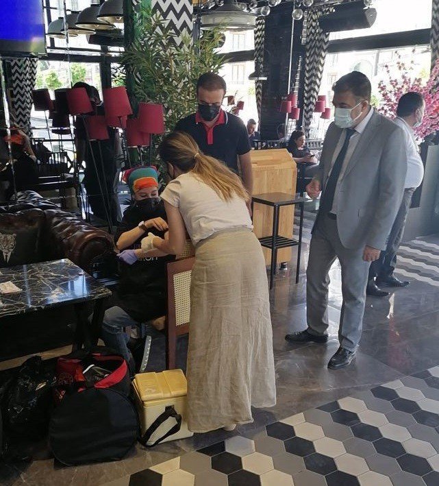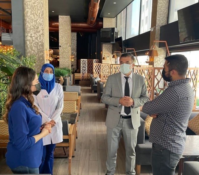 Prof. Dr. Sünnetçioğlu, kafe ve restoranlarda alınması gereken önlemler hakkında da bilgiler vererek, çalışan personelin de nelere dikkat etmesi gerektiğini anlattı. Sünnetçioğlu, "Bir an önce normalleşemeye girebilmek için herkesi aşı yapmaya davet ediyoruz. Unutmayalım her şeyin başı sağlık, sağlığın başı aşıdır. Lütfen aşılarımızı olalım. COVID-19 enfeksiyonu damlacık ve temas yoluyla bulaşmaktadır. Çay bahçeleri, restoran, lokanta, kafe, pastane, börekçi, tatlıcı ve içerisinde yeme-içme hizmeti sunan işletmelere yoğun talebin olması, kişiler arası sosyal mesafenin korunamaması, sık dokunulan yüzeylere temas nedeniyle COVID-19 bulaşması açısından riskler söz konusu olabilir. Bu nedenle talep gören bu alanlar da COVID-19 kapsamında bakanlığımızın belirlediği kurallara uyulmalıdır" dedi.