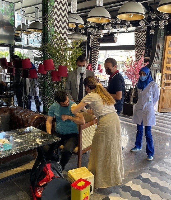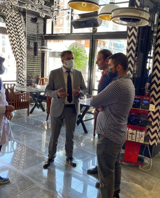 İl Sağlık Müdürü Prof. Dr. Mahmut Sünnetçioğlu, İpekyolu İlçe Sağlık Müdürlüğü ekiplileri ile kafe ve restoran işletmecileri ve çalışanlarını korona virüs salgına karşı bilgilendirdi. Kafede bulunanlara korona virüs aşısının da yapıldığını belirten Prof. Dr. Sünnetçioğlu, kademeli normalleşme sürecinden itibaren sosyal hayatta yasakların kısmen azaltılması ile aşı uygulamasına hız verildiğini kaydetti. Sünnetçioğlu, "Bu mücadele sırasında en çok etkilenen sektörlerden birisi de kafe ve restoran tarzı işletmelerimiz oldu. Her yerde olduğu gibi kafe ve restoranlarda da alınması gereken birçok tedbir var. Özellikle ortak kullanım alanlarında maske, mesafe ve temizliğe çok dikkat edilmeli ve ayrıca sağlığımız için mutlaka korona virüs aşılarımızı yapalım. Bu mücadelede birlikte hareket ederek başarılı olacağız" diye konuştu.