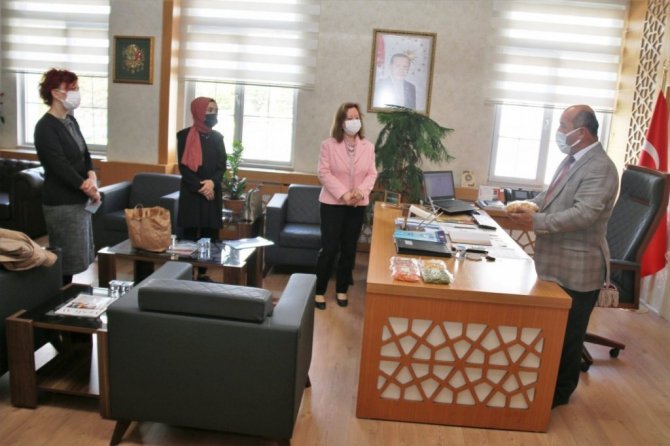 Müdür Başyiğit, yaptığı başarılı çalışmalar dolayısıyla Glowing Pens/Coşkulu Kalemler eTwinning projesi yürütücüsü Sema Perli'ye ve Okul Müdürü Nur Öziltürk'e teşekkür etti.