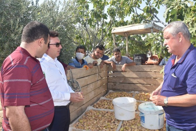 Protokol, köylülerle incir hasadına katıldı