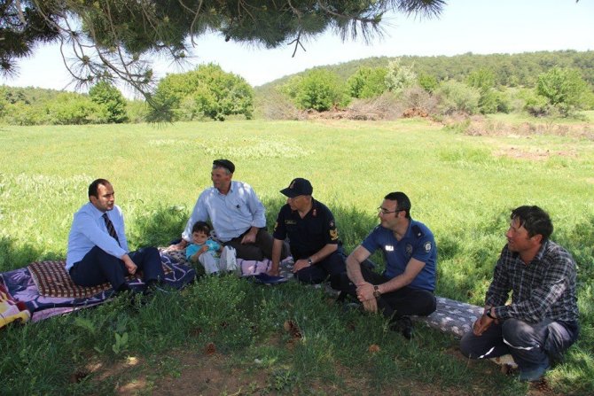 Dumlupınar Kaymakamı Abdulkerem Abbasoğlu, Emniyet Amiri İbrahim Kurt, Jandarma Komutanı Mustafa Çelik ile beraber Ulualan yaylasında küçükbaş hayvan yetiştiriciliği yapan Mehmet Ali ışık ve Mustafa Işık’ı ziyaret etti.