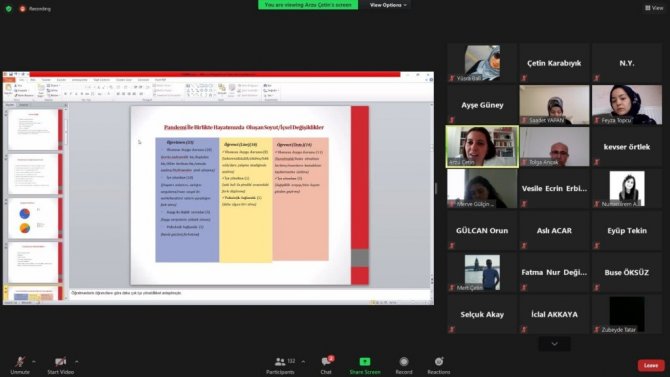 Psikolojik Danışmanı Arzu Çetin, "Pandemi Döneminde Öğretmen ve Öğrenci Psikolojisi", Klinik Psikolog Mehmet Büyükçorak "Kovid-19'a Rağmen Ben Nasıl Pozitif Kalabilirim" ve Klinik Psikolog Büşra Yazıcı da, "Çocuklarda Psikolojik Dayanıklılık Nasıl Artırılır" konularını katılımcılara hazırlamış oldukları sunumlarla anlattı.