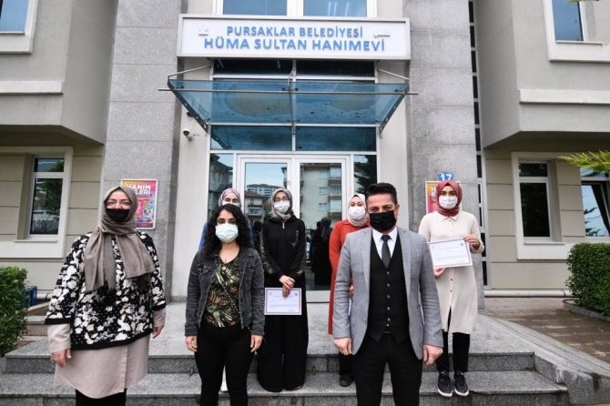 Hanımların mesleki gelişimine katkı sağlamak amacıyla Pursaklar Belediyesi Hanım Evlerindeki kurslara katılan kursiyerler, pandemi sürecinde aldıkları telafi eğitimleriyle dönemlerini başarıyla tamamladı.
