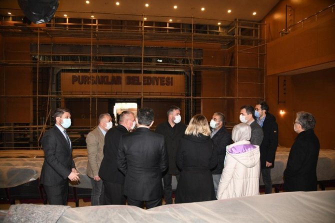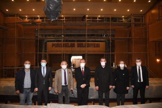 Pursaklar Belediye Başkanı Ertuğrul Çetin, Devlet Tiyatroları Genel Müdürü Mustafa Kurt ile yapımı devam eden Devlet Tiyatroları sahnesinde incelemede bulundu.