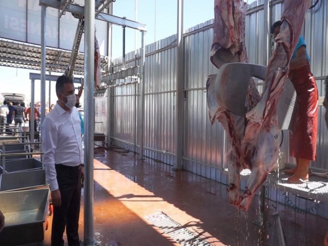 El değmeden gerçekleşen ve son teknoloji makinelerin kullanıldığı Modern Kurbanlık Satış ve Kesim Alanında, kesimin daha kolay ve hijyenik bir şekilde kısa bir süre içerisinde tamamlanarak vatandaşlara teslim edilmesi sağlanıyor.