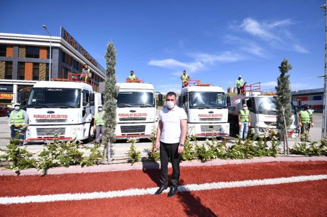Pursaklar'a kazandırdıkları yeni sulama araçları ile vatandaşlara daha kaliteli, daha hızlı ve daha verimli hizmet sunacaklarını belirten Belediye Başkanı Ertuğrul Çetin, "Araç filomuza bu yıl kazandırdığımız 4 adet sulama tankeri, fazla su israfı yapmadan etkin sulama ile yeşil alanlarımızda hizmet vermeye başladı. Belediyemize kazandırdığımız su tankerleri özellikle ilçemizde her geçen gün daha da arttırdığımız yeşil alanlarımızın sulama çalışmasında bizlere güç verecek. Uzun yıllar hizmet verecek olan araçlarımız, çalışmalarımızda bizlere büyük kolaylık sağlayacaktır. Yeni araçlarımızın ilçemize hayırlı olmasını diliyorum" dedi.