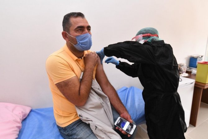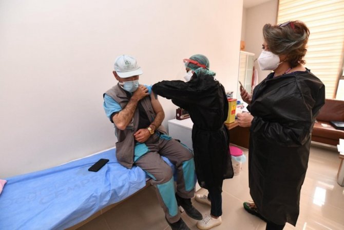 Pursaklar Belediyesi personeli, Sağlık Bakanlığı tarafından başlatılan yerinde koronavirüs aşı uygulaması kapsamında aşılanmaya başladı.