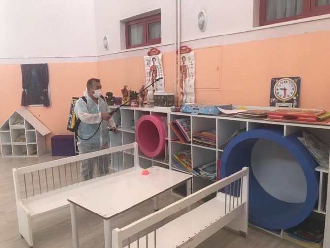 Pursaklar Belediyesi, yeni eğitim-öğretim yılının başlamasına sayılı günler kala ilçedeki tüm okullarda yoğun dezenfekte çalışmaları yapıyor.