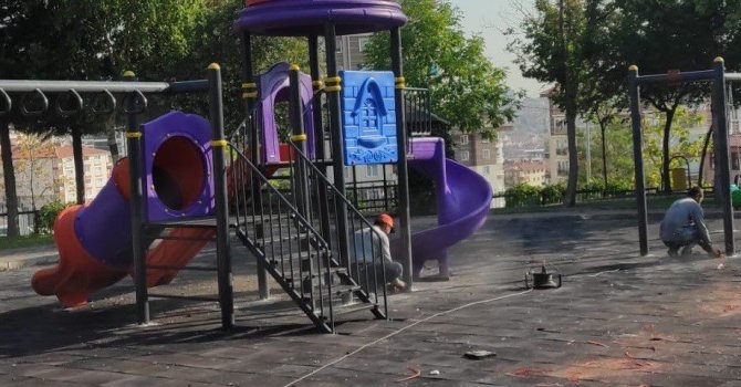 Pursaklar Belediyesi Park ve Bahçeler Müdürlüğü'ne bağlı ekipler tarafından, çocukların daha rahat ve güvenli ortamda oyun oynamaları adına kauçuk zemin döşeme, oyun alanında bulunan ve eski durumda olan oyuncakların yenilenmesi ve oyuncak sayısı az olan yerlere de yeni oyuncaklar konuluyor.