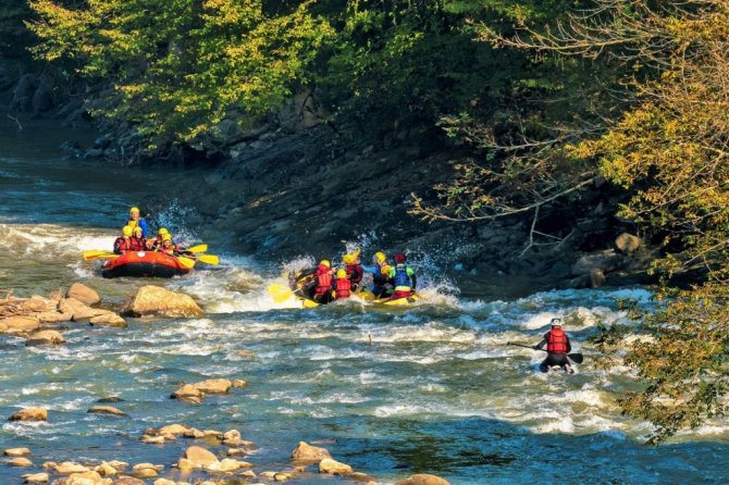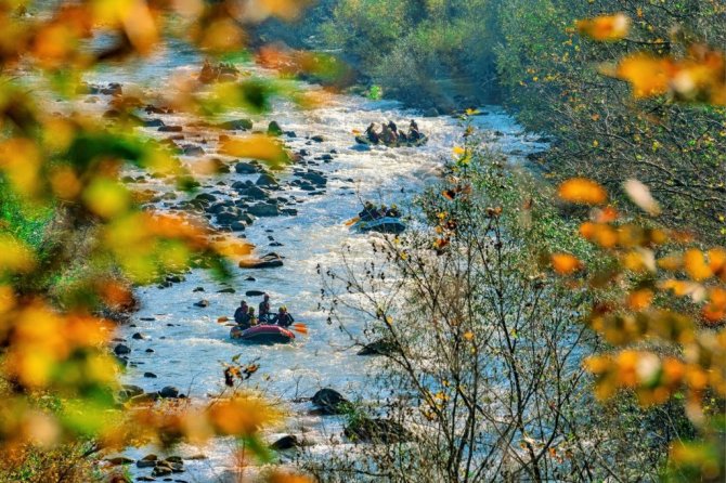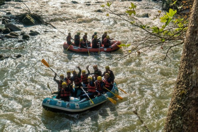 DÜZCE (İHA) – Düzce'nin turistik noktalarından birisi olan Dokuzdeğirmen köyü, rafting ile adrenalin depolamak isteyen turistleri ağırlamaya devam ediyor.
