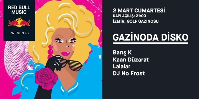 Red Bull Music; ‘Gazinoda Disko’ konsepti ile İzmirli müzikseverlerle buluşmaya hazırlanıyor. Red Bull Music; 2 Mart Cumartesi gecesi İzmir’deki Golf Gazinosu’nda gerçekleşecek olan ‘Gazinoda Disko’ etkinliğiyle geçmişteki gazino kültürüne saygı duruşunda bulunacak. Bu özel gecede DJ No Frost, psychedelic rock müzik grubu Lalalar, Kaan Düzarat ve Barış K sahne alacak.