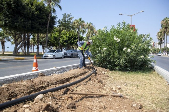 Büyükşehir Belediyesinden yapılan açıklamaya göre, kent merkezinde Adnan Menderes Bulvarı, 34. Cadde, 26. Cadde ve 13. Caddede çalışmalar başladı. Toplamda 32 bin metre uzunluğunda otomatik sulama sistemi ekipler tarafından cadde ve bulvarlara döşeniyor. 4 merkez ilçenin park ve refüjlerinde altyapı kurularak, 100 kilometrelik bir alanda çalışmaların devamı planlanıyor.