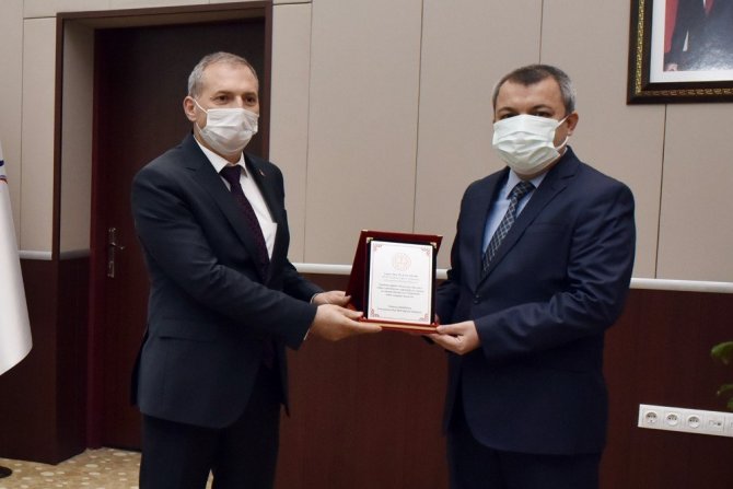 Rektör Ataç’a uzaktan eğitime katkılarından dolayı plaket