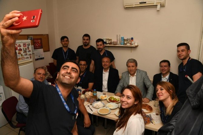 Prof. Dr. Budak’ın ikinci durağı ise sağlık çalışanı Rıdvan Kalmi’nin davetiyle Ege Üniversitesi Tıp Fakültesi Gastroentroloji Anabilim Dalı oldu. Burada Gastroentroloji çalışanlarıyla sahurda bir araya gelen Rektör Prof. Dr. Budak’a, Tıp Fakültesi Dekanı Prof. Dr. Cemil Gürgün, Tıp Fakültesi Başhekimi Prof. Dr. Tuncay Göksel ve Başhekim Yardımcıları da eşlik etti.