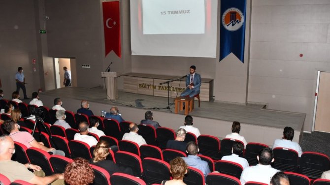 Fen-Edebiyat Fakültesi Öğretim Üyesi Prof. Dr. Yaşar Erjem de "15 Temmuz'un Toplumsal Dinamikleri" başlıklı konuşmasında, FETÖ terör örgütünün yapılanma sürecinden ve 15 Temmuz darbe girişimine kadar olan gelişmelerden bahsetti. Erjem, "Darbeye karşı yurttaşlarımız hakikaten örnek bir direniş gösterdi. Bunu da tankların önüne çıkarak, kurumlarla iş birliği göstererek ve yaklaşık 1 ay boyunca sokaklarda demokrasi nöbeti tutarak yaptılar. Bu olay ise demokrasimizi güçlendirdi. Tabii demokrasinin kurumlaşması kolay değil ve bu süreç deneyim, altyapı ve zaman istiyor. Yurttaşlarımız mücadeleleriyle demokrasimize, kurumlarımıza ve seçilmiş yönetime sahip çıktığını gösterdi" ifadelerini kullandı.
