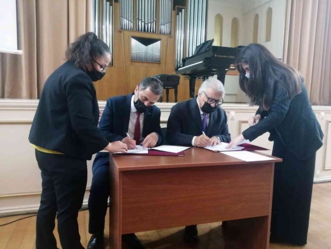 Üzeyir Hacıbeyli Bakü Müzik Akademisi ile iş birliği sözleşmesi imzalayan Rektör Çiçek ardından Bakü Avrasya Üniversitesi Rektörü Prof. Dr. Nazım Hüseyinli ile bir görüşme gerçekleştirdi. Bu görüşme neticesinde iki üniversite arasında Mevlana Değişim Programı Protokolü imzalandı.