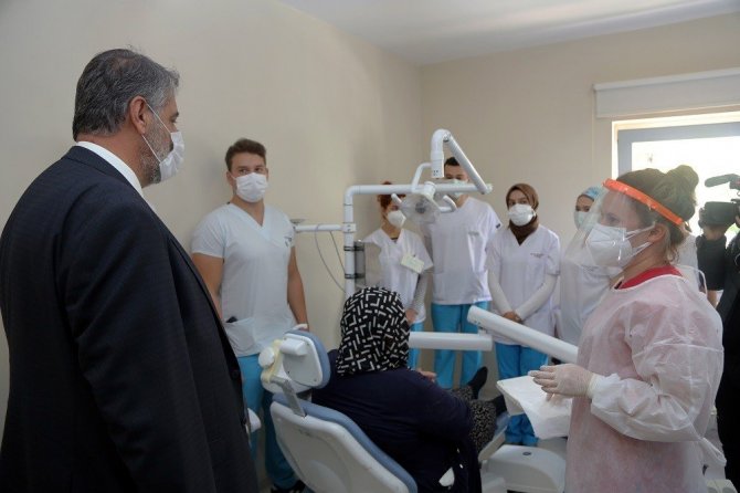 Klinik ziyaretlerinin ardından Rektör Prof. Dr. Refik Polat yeni dönemde Diş Hekimliği Fakültesi ile Ağız ve Diş Hastanesinin ortak çabalar neticesinde afiliasyon olduğunu belirterek, "Türkiye'de afile olan çok az Diş Hastanesinden biri de Karabük'te yer alıyor. Karabük için bu önemli bir adımdı. Öğrencilerimiz bu yıl dördüncü sınıfa geçti. Burada eğitimlerine devam ediyorlar. İnşallah eğitimleri için çok önemli olan bu aşamayı hastanemizde tamamlayacaklar ve ülkemize faydalı birer diş hekimi olarak hayatlarını sürdürecekler. Öğrencilerimizin ve Hocalarımızın burada görev almasından oldukça mutluyuz. Bu konuda emeği olan Başhekimimize ve İl Sağlık Müdürümüze teşekkürlerimi sunuyorum." dedi.