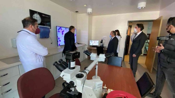 Rektör Mustafa Çufalı ardından Onkoloji Bölümü'nde hematoloji laboratuvarındaki çalışmalar hakkında da bilgiler aldı. Öte yandan hastaneye katkı sağlayan bir hayırsever adına teşekkür belgesi takdim edildi.