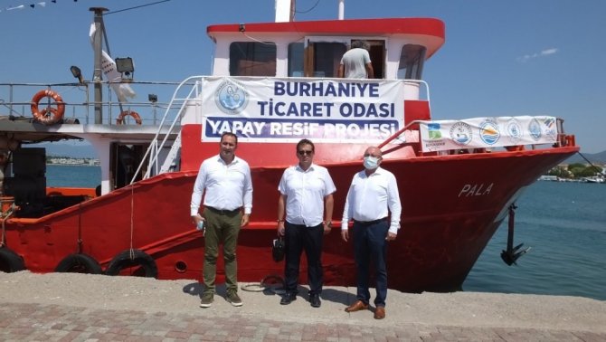 Ticaret Odası Yönetim Kurulu Üyesi Hasan Varol da, "Mustafa Aysel başkanımızla beraber 2015 yılından beri bu proje üstünde çalışıyoruz. 2020 yılı sonu itibarıyla da Tarım Bakanlığımızdan izin alarak Edremit Körfezine ve Burhaniye'mize resif projesi başlattık. Bu günden itibaren de resiflerimizi denizle buluşturuyoruz. Denizimize, memleketimize ve deniz altına hayat kazandırıyoruz. Özellikle çocuklarımıza, geleceğimize, balığın denizin canlılığının nasıl olduğunu göstermek istiyoruz. Şu günlerde denizlerimizde ve özellikle Marmara denizinde olan yoğunluğun, pisliğin gündemde olduğu zamanda biz körfezimizin temiz kalması ve daha çok balık popülasyonunun canlı olması için çalışıyoruz. Bununla ilgili Ticaret Odasının birçok çalışması var. İnşallah bu ilk adımımız. Daha sonra bunları daha da artırarak, üzerine koyarak devam edeceğiz. Memleketimize bir hatıra bırakacağız" şeklinde konuştu.