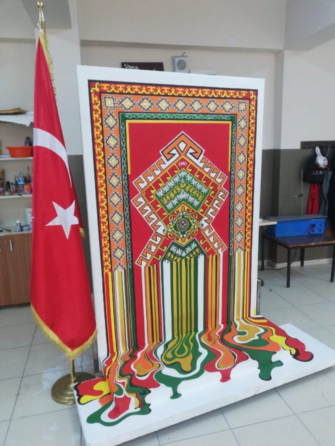 Cumhurbaşkanlığı forsunda yer alan ve 16 büyük Türk Devleti simgesini eserine aktaran İsmail Erkara, yaptığı çalışma ile dikkatleri üzerine çekti.