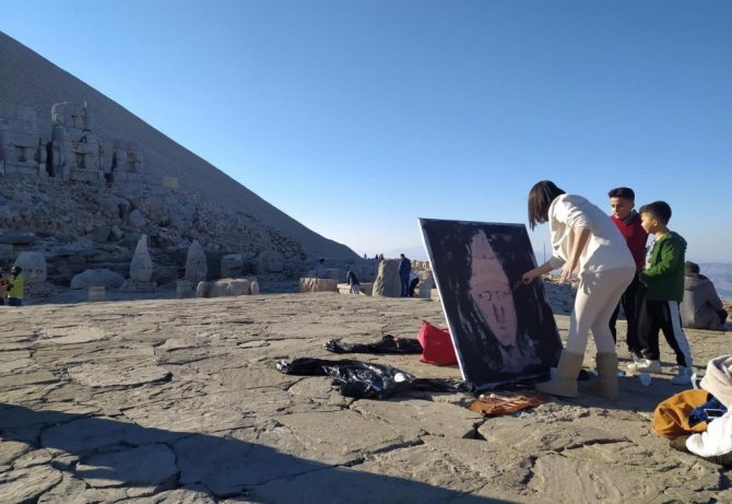Ressam, Nemrut Dağı’nda canlı performans sergiledi