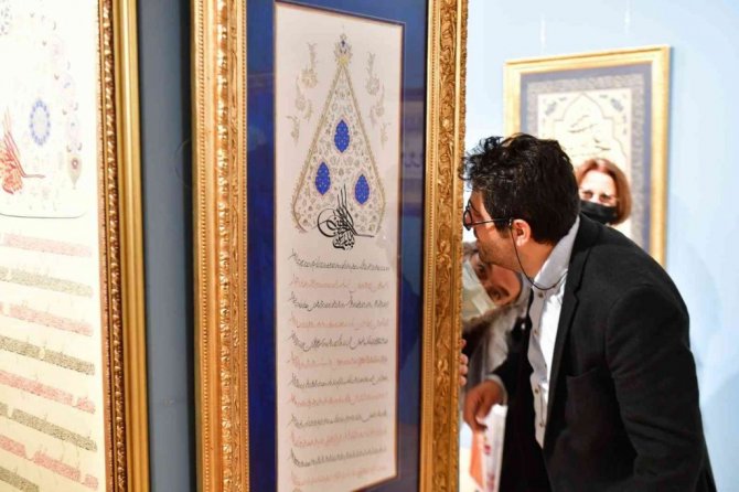 hocaların ve öğrencilerin eserlerinden oluşuyor. Farklı yazı çeşitlerine yer verilen sergide, talik, celi divanı, sülüs, nesih, muhakkak yazı örnekleri ve yazı kalıpları bulunuyor. Çelebi'nin kendi seçtiği eserlerden oluşan 25 koleksiyonerden derlenerek hazırlanan sergi ziyaretçilere tarihe yayılmış hüsn-ü hat eserlerini izleme imkanı sundu.