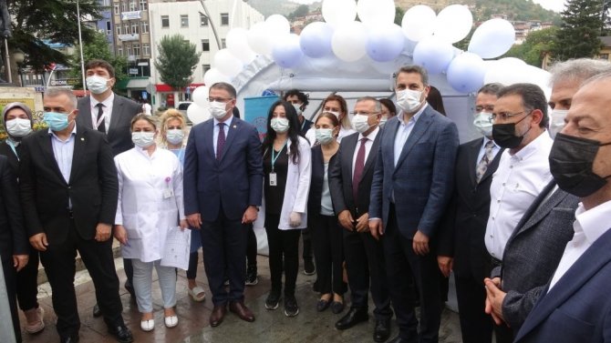 Tokat Cumhuriyet Meydanı'nda İl Sağlık Müdürlüğü tarafından Covid-19 aşılama kampanyasına dikkat çekildi. Tokat Valisi Ozan Balcı, Korona virüs risk haritasında mavi il olabilmek için aşılamaya ağırlık verilmesi çağrısında bulundu. Vali Balcı, Tokat'ta aşılama oranın yüzde 69 olduğunu belirterek, "Tokat'ta 322 bin kişi ilk doz aşısını yaptırdı. Hedefimiz 450 bin kişiye aşı yaptırmak. Kadını ve erkeği ile yaşlısı ve genci ile bu mücadeleyi devam ettirmek zorundayız. Aşılama kampanyasına desteğimizi buradan ilan ediyoruz. Bu mücadelede doktorlarımız başta olmak üzere, ebelerimiz, hemşirelerimiz, sağlık çalışanlarımız, idari ve teknik personelimiz gece gündüz demeden canla başla çalıştılar. Onların hepsine gönülden teşekkür ediyorum" dedi.