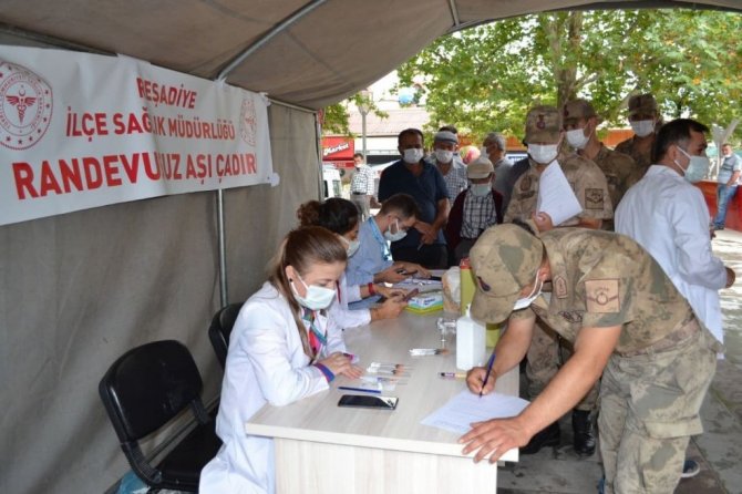 Reşadiye Alparslan Türkeş parkında kurulan çadırda asker ve polisin yanı sıra vatandaşlar aşılama kampanyaya destek verildi. Reşadiye Kaymakamı Talat Batur, Reşadiye Belediye Başkanı Mustafa Yılmaz kurun amirleri ve vatandaşlar katıldığı programda vatandaşlar randevusuz aşı olma imkanı buldu. Kaymakam Batur, ilçede aşılama oranın yüzde 73 olduğunu kaydetti.